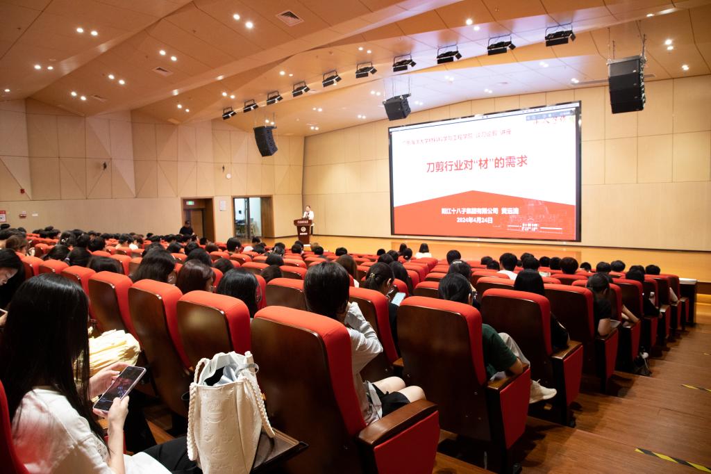 为了深化学生对材料科学专业以及刀剪行业的理解,激发他们对材料研究的学习兴趣和创新精神,同时满足产业界对专业人才的需求,促进产学研的深度融合,2024年4月24日下午,bwin必赢材料科学与工程学院特别邀请了阳江十八子集团有限公司高级工程师、首席执行官黄远清女士来校进行专题讲座,讲座由材料科学与工程学院郭福建老师主持。