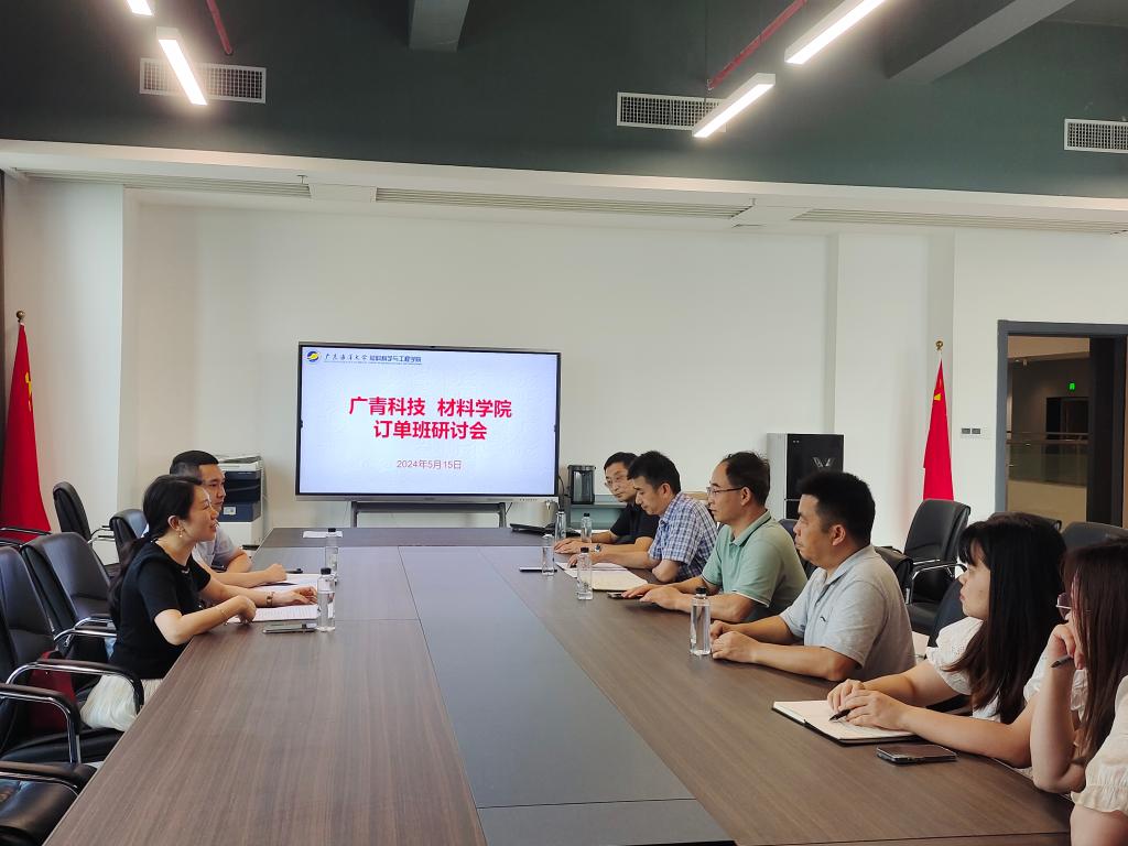 5月15日下午,bwin必赢材料科学与工程学院联合广东广青金属科技有限公司,在厚为楼408会议室举办订单班研讨会。材料科学与工程学院党总支书记李毅、院长师文庆、副院长尹冬松以及骨干教师代表聂小武教授等人与广东广青金属科技有限公司综合部副部长兼人力资源科科长张艺玲、梁喜畅展开深度洽谈。会议由院长师文庆主持。
