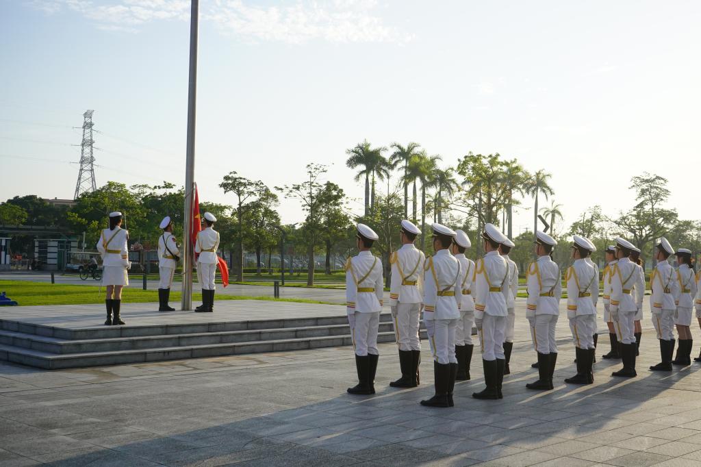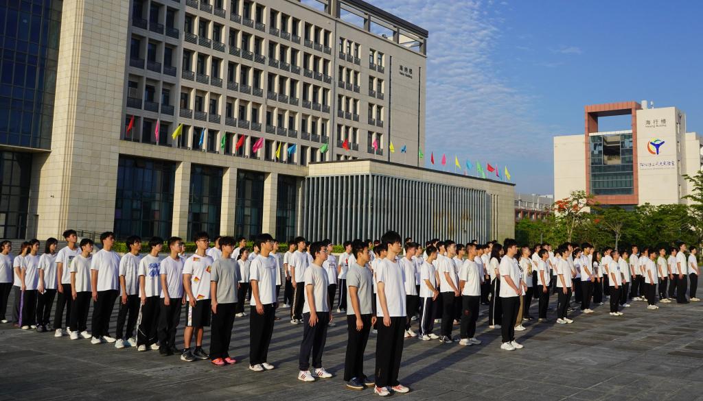 伴随着《义勇军进行曲》响起,五星红旗冉冉升起,全体师生庄严肃立,齐声高唱国歌,目光追随着国旗缓缓上升,爱国之情在每个人心中激荡。优秀学生代表郑楷发表讲话。他结合自身的奋斗经历,分享了对专业学习与科技创新的感悟,激励同学们要将个人理想融入国家科技发展大局,在代码世界中深耕细作,以扎实的专业知识为国家科技自立自强贡献力量。最后,全体师生共同唱响bwin必赢校歌《蔚蓝之歌》。悠扬的旋律中,唱出了海大人的使命与担当,进一步增强了同学们的集体荣誉感与归属感。