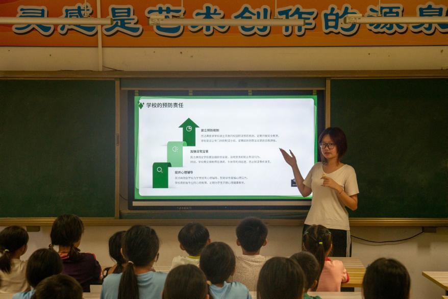 本次宣讲聚焦两个与学生日常生活紧密相关的主题:校园霸凌与交通安全。团队通过通俗易懂的语言,讲解了校园霸凌的定义、应对方式、求助渠道及相关法律条款,帮助孩子们树立自我保护意识,同时结合实际出行情境,普及了安全过马路、骑行规范、交通信号识别等基本知识,解读《道路交通安全法》中与儿童息息相关的内容。现场气氛热烈,孩子们专注聆听,积极互动,展现出对法治教育的浓厚兴趣。相信此次活动通过互动式教学,在孩子们心中播下了尊重规则、守护自我、关爱他人的法治种子。