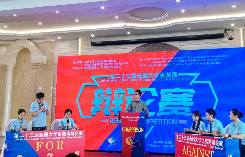2024年8月2日至7日,全国大学生英语竞赛全国总决赛在广西壮族自治区桂林市举办。经过与来自全国212所高校370名选手的激烈角逐,计算机科学与工程学院胡轩浩同学获得演讲比赛优秀奖、辩论赛三等奖,杨莞淳同学获得演讲比赛优秀奖,并被评为“优秀参赛选手”。