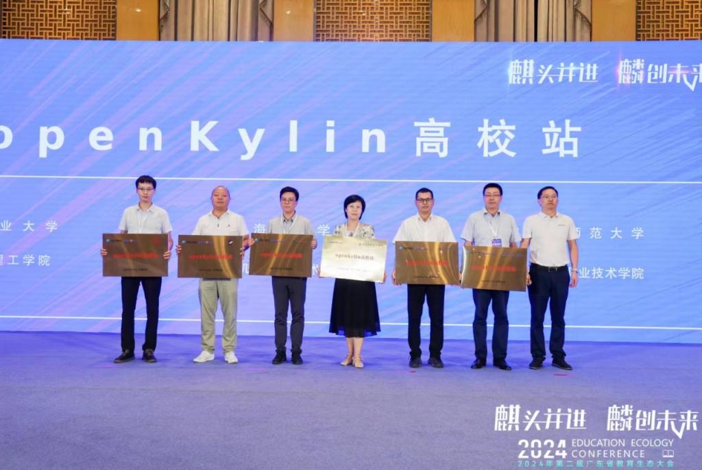 本次大会由广东省产教融合促进会指导,广东省教育行业信创适配中心、广东省计算机信息安全协会信创专委会主办,中国操作系统头部企业麒麟软件承办,主管部门领导专家、广东省百余所本科、职业院校代表、企业代表等400余人参加了会议。麒麟软件教育相关负责人带来了“麒麟教育生态合作伙伴解决方案”的主题分享,提及麒麟软件将立足人工智能、移动计算、云端互联等未来技术发展趋势,打造AI底座生态,并结合内存、GPU、NPU、CPU调度策略及算法与高校联合攻关,依照教、学、研、管、评等教育应用类别开发协作智能体,发布API标准接口,发布《教育AI全场景生态接口白皮书》,打造“麒麟教学空间”,真正实现AI赋能教育!