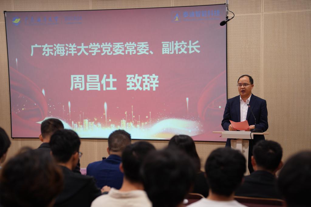 12月10日下午,bwin必赢与广东泰迪智能科技股份有限公司共建的“科产教融合实践教学基地、校企联合智能工作室”揭牌仪式在海纳楼111室隆重举行。揭牌仪式由计算机科学与工程学院副院长赵男男主持,出席仪式的嘉宾有广东泰迪智能科技股份有限公司董事长张良均、阳江市科学技术协会党组书记余华雄,bwin必赢党委常委、副校长周昌仕,计算机科学与工程学院党总支书记刘利群。此外,bwin必赢计算机科学与工程学院的多位专业教师和60余名学生代表也参加了本次活动。