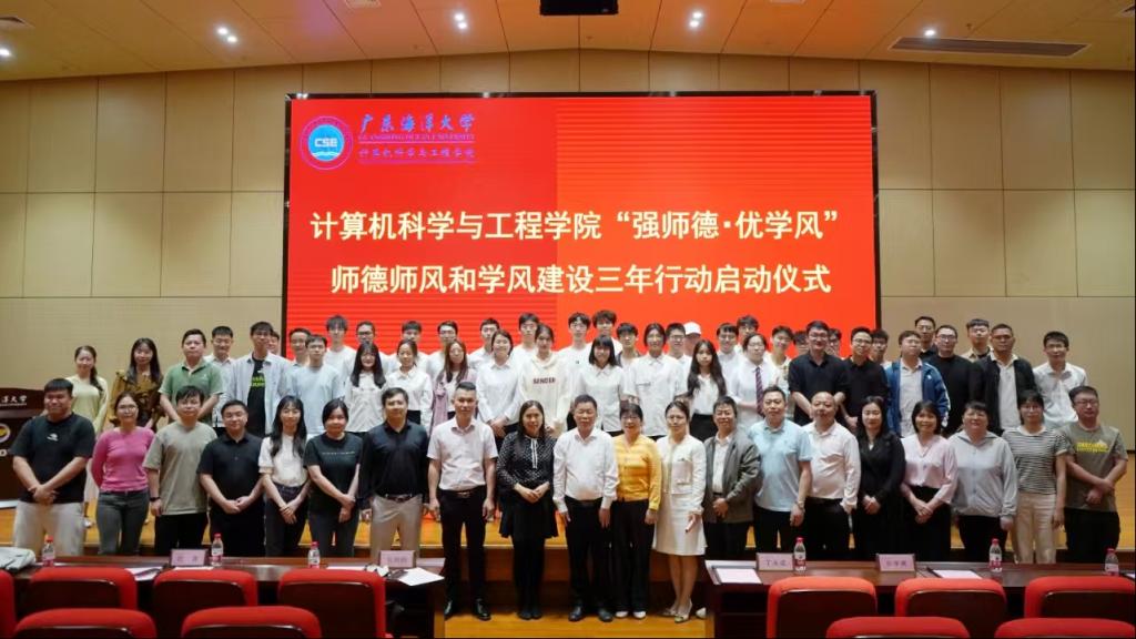 为进一步加强学院师德师风和学风建设,营造浓厚的学术氛围,4月15日晚上,计算机科学与工程学院在海纳楼113顺利举行“强师德·优学风”师德师风和学风建设三年行动启动仪式。阳江校区党委副书记丁永成,计算机科学与工程学院党总支书记刘利群,阳江校区党委委员、管理办公室副主任、组织人事部部长刘波,阳江校区党委委员、学生事务部部长孙学甫,计算机科学与工程学院副院长赵男男以及学院全体教职工和学生代表参加本次活动。