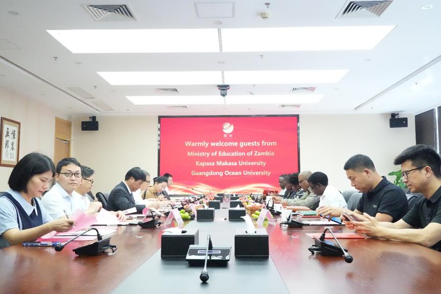杨洲简要介绍了我校的历史沿革、办学规模、人才培养、办学实力、国际合作与交流等情况,追溯了中赞两国友谊发展史,并表示高度重视我校与赞比亚卡帕萨·马卡萨大学、广东恒兴集团联合开展建设的赞比亚“国家级罗非鱼育种生产中心”项目,期待各方整合优势力量,汇聚科研资源,为深化中赞两国渔业科产教合作贡献更多力量。