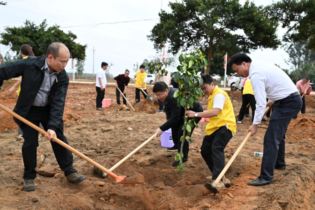 3月10日下午,学校党委书记杨洲、党委副书记谭平率相关部门负责人,以及40余名师生志愿者来到学校驻镇帮镇扶村点——遂溪县河头镇,在这片充满希望的土地上种下了“绿水青山”的美好愿景。杨洲、河头镇党委书记黄彬恩分别致辞,谭平主持植树活动启动仪式。