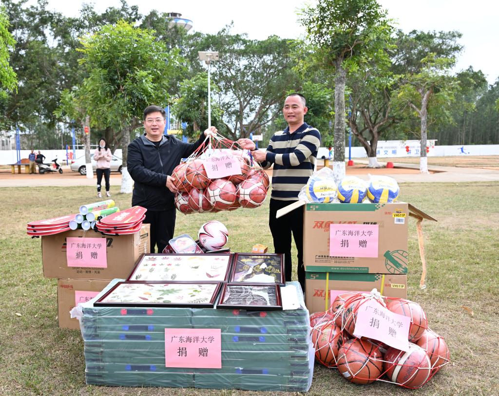 活动期间,杨洲代表学校向河头镇双村小学捐赠了一批体育用品,帮助双村小学改善教育设施。我校师生开展了《绿叶之语:海大的奇妙春天》艺术科普创作捐赠活动,将生态教育融入劳动实践。