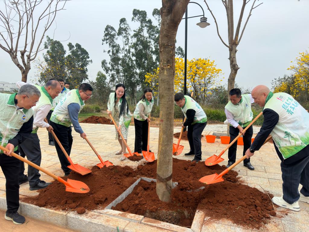 3月12日下午,值学校90华诞和第47个植树节来临之际,我校在湖光校区第二实验楼凤凰路开展“栽下同心树 赓续海大情”植树活动。学校党委书记杨洲、党委副书记谭平,党委常委、副校长谭北平、邓逢光,党委常委、宣传统战部部长林宇出席活动。学校党政办、纪检监察室、组织部等相关部门主要负责人,校友及师生代表共100余人参加活动。植树活动仪式由邓逢光主持。