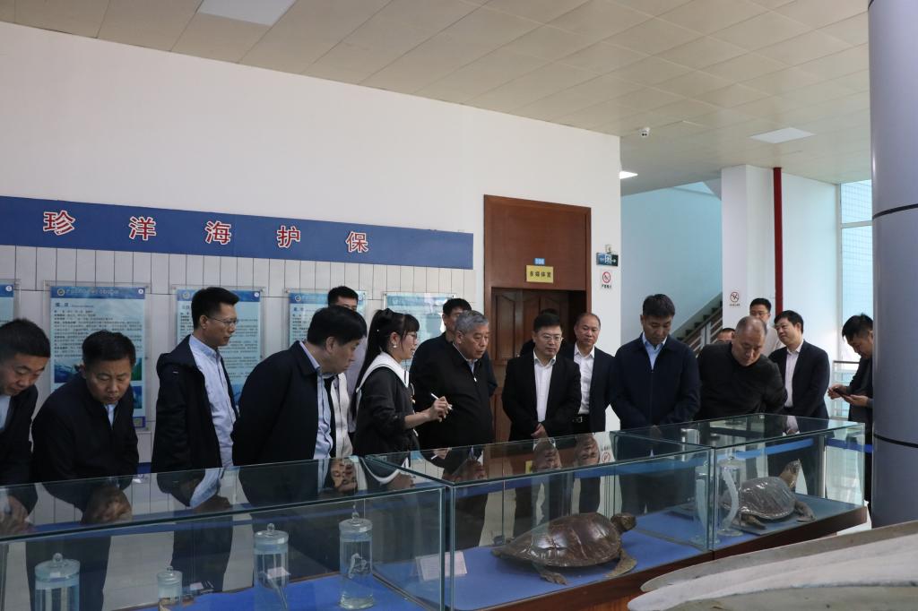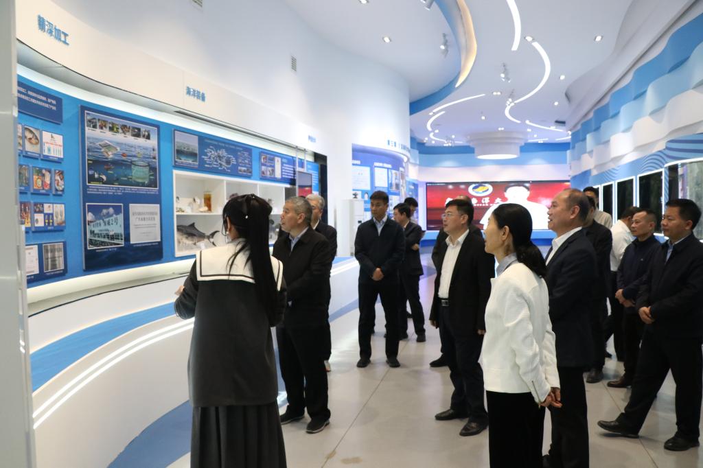 史全新一行参观了我校海洋牧场展厅,重点了解了学校在水产种业、渔业资源开发利用、耐盐碱水稻培育推广和海洋生态环境保护等方面的情况,对学校近年来取得的成绩给予高度评价,表示希望以此次调研为契机,加强校地合作,充分发挥高校的智力优势,在当地农业发展特别是水产养殖等方面给予技术指导和帮扶。