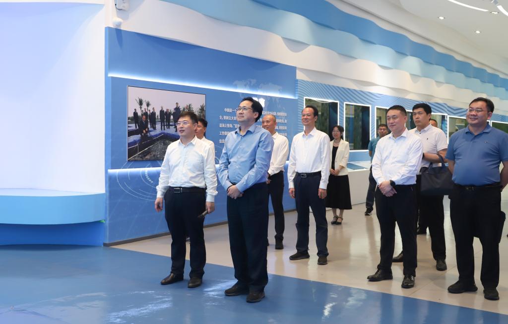 刘棕会一行参观了我校海洋牧场展厅,观看了我校在六大海水品种领域(硇洲族大黄鱼、章红鱼、南美白对虾、扇贝、马氏珠母贝、生蚝)取得的系列突破性成果展示视频,重点了解了学校强化水产良种选育、开发海洋牧场适养品种、推动苗种繁育体系建设等方面情况,对学校取得的成绩特别是在水产种业领域的技术创新方面所做的工作给予充分肯定。