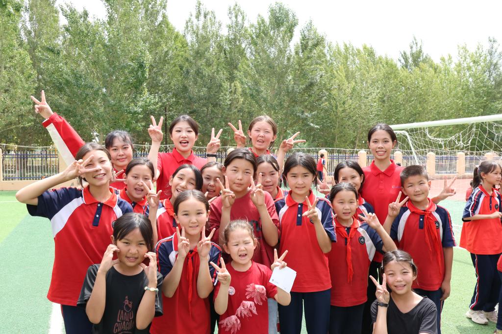 慰问仪式上,我校师生向驻扎新疆的西部计划志愿者致以慰问,并为谢依特小学学生们送去书包。五年级学生努尔扎达将一枚喀什的乳白色贝壳交给实践团成员叶美,请她“放回大海”。志愿者周嘉欣说道:“贝壳承载着边疆孩子对海洋的向往,而书包则见证了我们跨越山海的承诺。”随后,粤疆学子手挽手,用柯尔克孜语和粤语合唱《我和我的祖国》,并参与“语言传声筒”活动。当学生们跳起“黑走马”舞蹈,粤语歌声与柯尔克孜族民歌交织,真挚舞步与轻盈舞姿相映,生动勾勒出民族团结的生动画卷。
