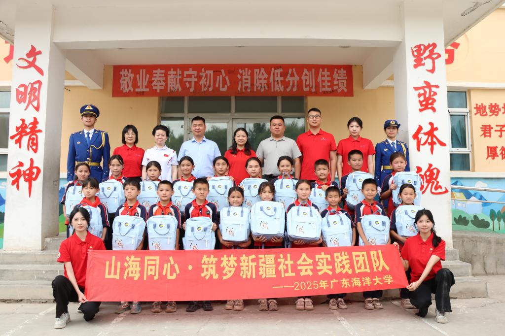 7月10日,我校“山海同心 筑梦新疆”实践团师生赴新疆谢依特小学开展社会实践活动。学校党委副书记谭平,阿图什团市委书记、教育工委副书记王健,校团委书记袁路,阿图什市哈拉峻乡党委委员、武装部部长董涛等参加活动,共同见证这场跨越山海的青春对话。