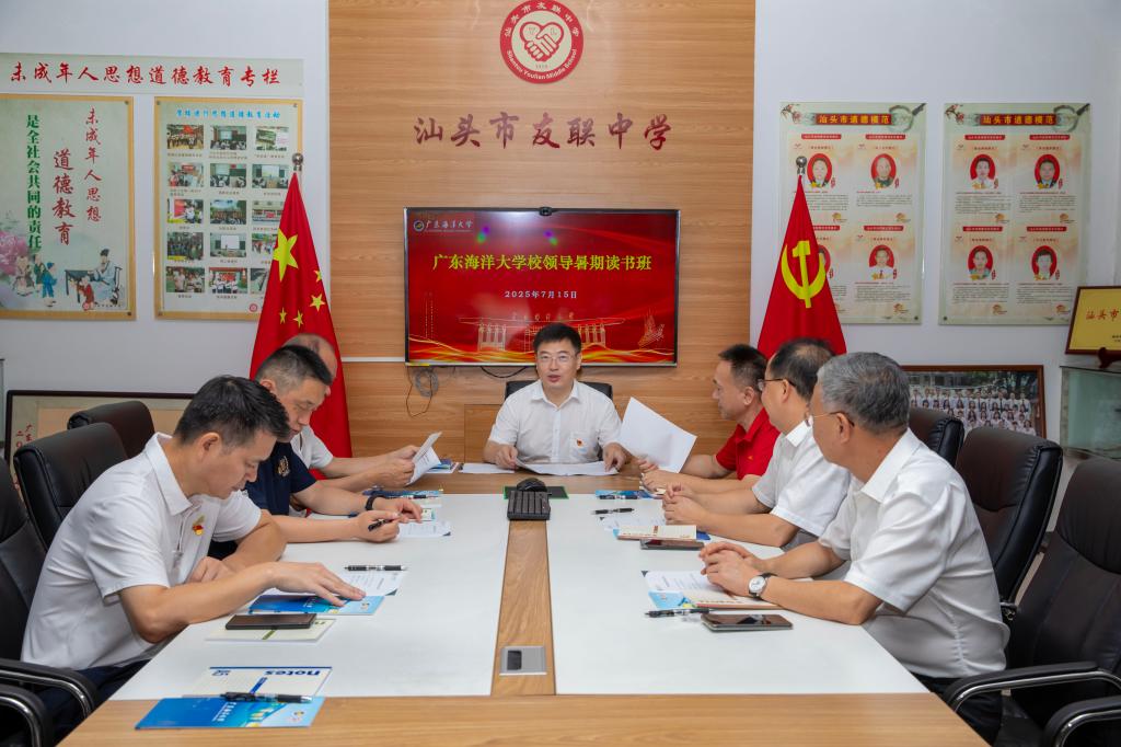 在友联中学,读书班与该校校长李伟光等师生、“中国珍珠大王”谢绍河等汕头校友,共同感悟学校创建伊始的初心使命和筚路蓝缕的创业艰辛。1935年,先辈们洞察“兴渔盐之利”的国之大计,以“适于办学、便于出海实习”的远见在此启航,创办广东省立(汕头)高级水产职业学校,开启了现代海洋水产教育的先河。“要铭记并传承‘因海而生、向海图强’的初心,让蓝色薪火生生不息。”在交流活动中,大家一致表示。