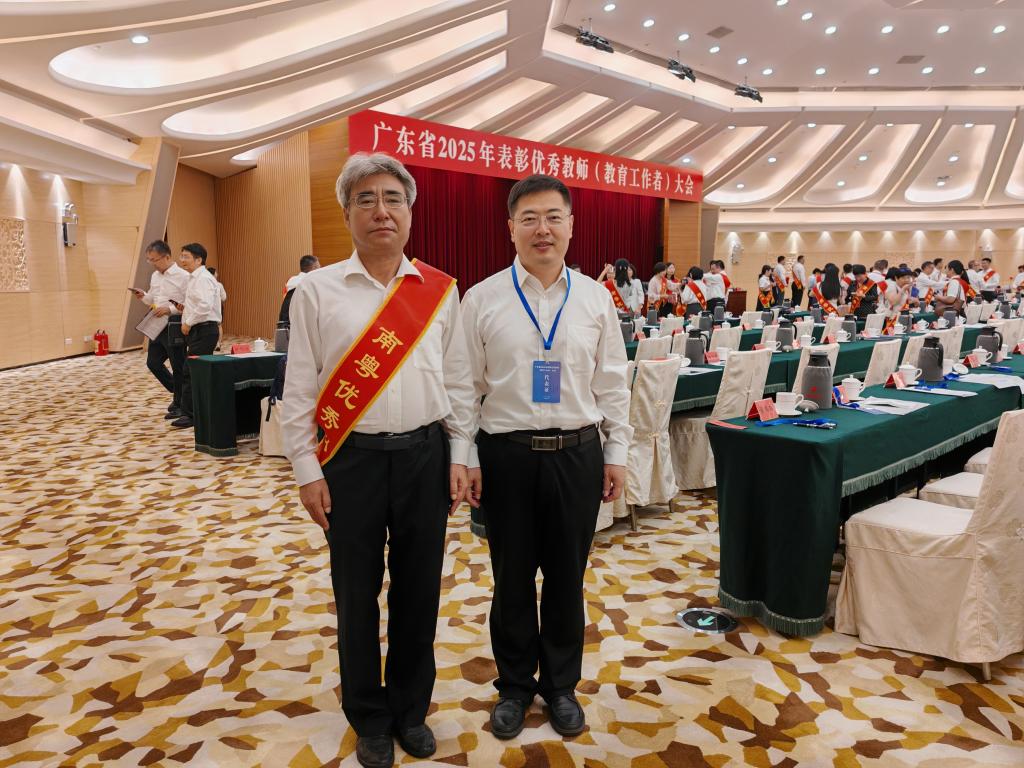 9月11日,广东省召开2025年表彰优秀教师(教育工作者)大会,对包括2025年南粤优秀教师、南粤优秀教育工作者、广东省特级教师等在内的全省优秀教师、教育工作者进行表彰。我校党委书记杨洲参加大会。我校共有4名教师获得“南粤优秀教师(教育工作者)”荣誉称号。其中,尹凝霞、赵志辉、张显伟获评“南粤优秀教师”,陈汉能获评“南粤优秀教育工作者”。赵志辉教授代表获奖教师参加大会并接受表彰。广东省教育厅联合南方日报、羊城晚报推出的“教育强省 强师先行”系列报道、《铸魂强师》特刊分别报道了陈汉能研究员的感人事迹和奉献故事。