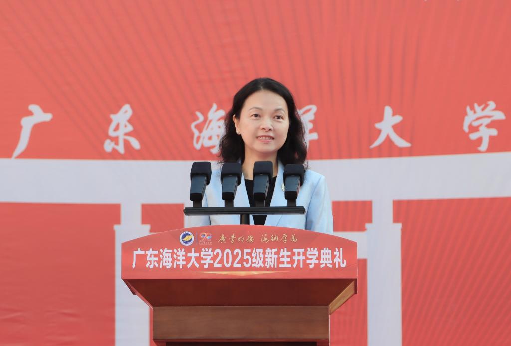 大学之“大”,在于树立大理想、涵养大胸怀、淬炼大实践、拓展大视野,如何在大学找准方向、锤炼本领、实现价值?杨洲向新生们提出四点希望:一是以大理想锚定使命之责,做“心有家国”的追光者。要以历史上扛枪卫国、在战场上诠释“为国为民”理想的海大先辈,以及现今在脱贫攻坚、乡村振兴、海洋牧场等领域发光发热的海大青年为榜样,把“小我”融入“大我”,让理想因“接地气”而坚实,让使命因“有方向”而坚定,让青春在时代的浪潮中绽放光彩。二是以大胸怀涵养厚德之品,做“向上向善”的修心者。要主动涵养“同理心”,尊重差异,团结协作;涵养“平常心”,学会与“不完美”和解,不让焦虑困住前行的脚步;涵养“敬畏心”,坚守学术诚信底线,让品行与学识同步成长。三是以大实践淬炼坚韧之身,做“迎难而上”的奋斗者。要主动走出“舒适区”,在专业学习中攻克技术难点,在科研项目中直面实验挫折,把每一次困难都变成“成长勋章”,让坚韧成为青春最厚重的底色。四是以大视野勇立时代之潮,做“敢想敢为”的开创者。海大人应该站在海洋强国、海洋强省建设的第一方阵,这是属于海大人的机遇与使命。希望同学们珍惜在校时光,夯实专业基础,增长见识,丰富学识,注重培养与海洋新质生产力发展相适应的素质能力,立志成长为胸怀蓝色梦想、堪当时代重任的优秀海洋人才。