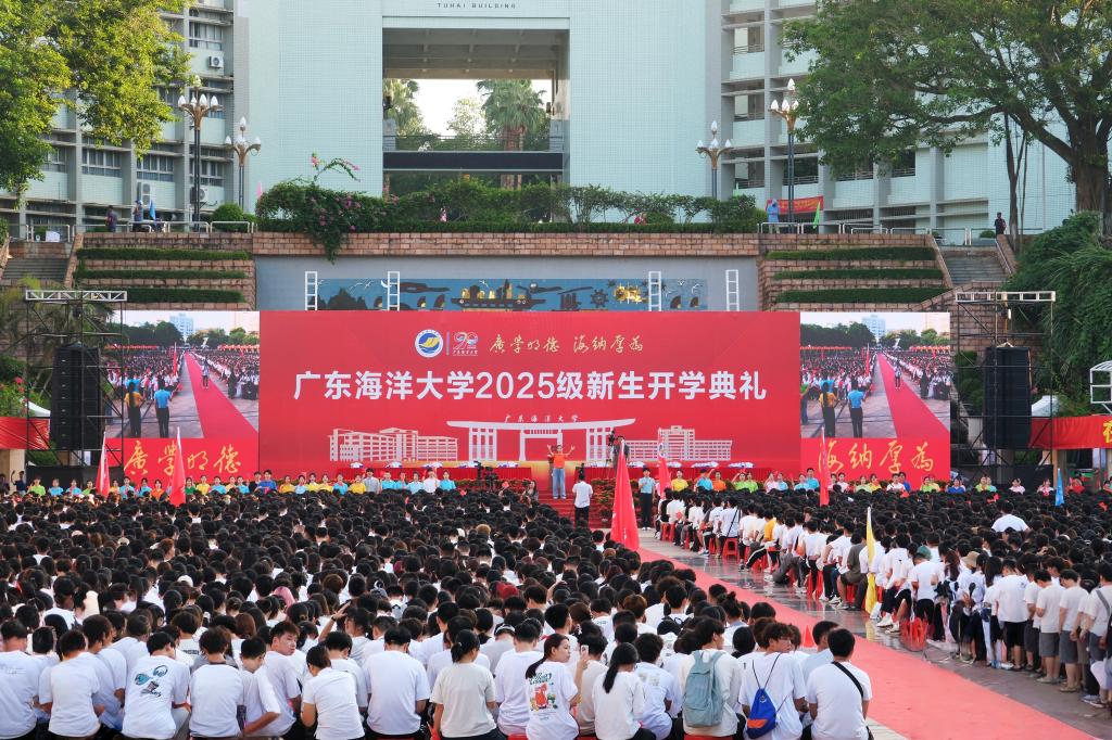 “碧海旭日,辉映南疆。海大精神,育我成长……”典礼在全体师生齐唱校歌《蔚蓝之歌》中落幕。11000余名新生正式开启大学生涯。作为学校90年海洋教育薪火的传递者、新时代“向海图强”的答卷人,他们将以海大为舟、青春为桨,在建设海洋强国的时代浪潮中奋楫前行。