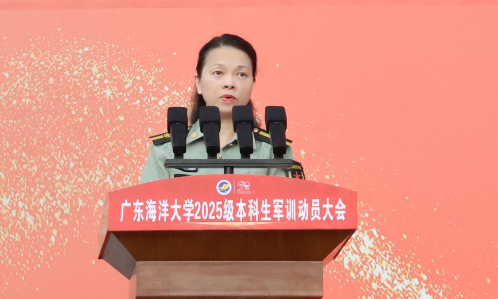 食品科学与工程学院2025级本科生杨铭源作为阳江校区参训学生代表发言,表示在接下来的日子里,将以饱满的热情、坚定的信念迎接这场训练。在军训中砥砺意志,铸就坚韧品格;在团队中学会协作,培养自律意识;在挑战中奋勇向前,成就自我价值。