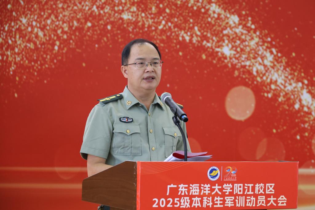 9月17日上午,学校在湖光校区东区运动场、阳江校区海阳馆举行2025级新生军训动员大会。学校党委书记杨洲,党委常委、副校长周昌仕分别作开训动员讲话。学校党委副书记谭平宣读军训旅机构设置情况及各营营长、教导员名单。学校党委常委、副校长、军训旅旅长鲁义善主持湖光校区大会,阳江校区党委副书记、军训团团长丁永成主持阳江校区大会,阳江校区党委副书记麦冬宁宣读各军训营营长、教导员名单。军训旅副政委、副旅长,各学院分管学生工作领导,全体教官,负责带训的辅导员和班主任,湖光校区、阳江校区2025级本科生现场参会。海滨校区2025级本科生通过线上直播形式参加大会。