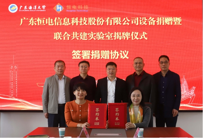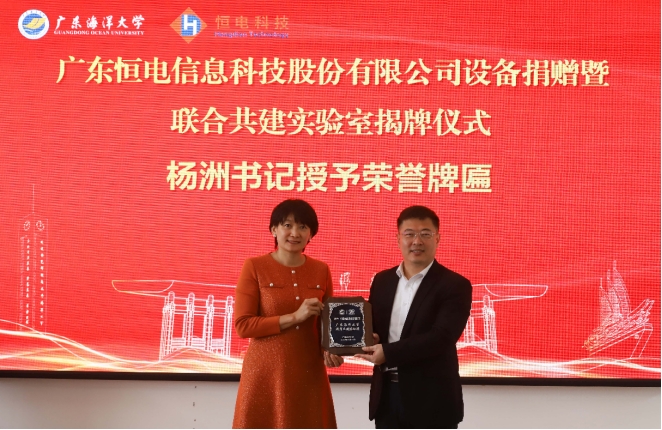 彭小红代表数学与计算机学院与高静共同签署设备物资捐赠协议,并接受企业捐赠的价值100万元的实验室设备。随后,杨洲代表学校向广东恒电信息科技股份有限公司授予了“bwin必赢教育卓越贡献奖”荣誉牌匾。