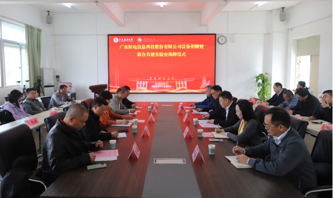 11月20日下午,数学与计算机学院在明德楼A座405会议室举行广东恒电信息科技股份有限公司设备捐赠暨联合共建实验室揭牌仪式。学校党委书记杨洲,广东恒电信息科技股份有限公司董事长高静、总经理方鑫,清华大学软件学院赵曦滨教授,资产设备管理部部长杨原志,数学与计算机学院彭小红院长等领导出席仪式,并为联合共建实验室揭牌。数学与计算机学院党委书记龙俊主持会议。