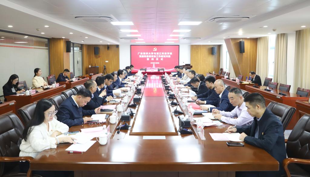 杨洲在讲话中指出,学校作为广东省高水平大学重点学科建设高校,肩负着示范引领、辐射带动的责任与使命,且与湛江科技学院渊源深厚、联系紧密。与湛江科技学院开展结对共建,既是上级组织交付的任务,更是我校主动担当、服务大局的自觉行动。他强调,两校结对共建不是“帮扶”与“被帮扶”的单向关系,而是“资源共享、优势互补、协同发展”的双向奔赴。这体现了两校积极响应省委教育工委号召的政治担当,更是两校发挥各自优势、实现互利共赢的战略选择。通过深度合作,必将推动两校党建与事业发展的同频共振、互利共赢。