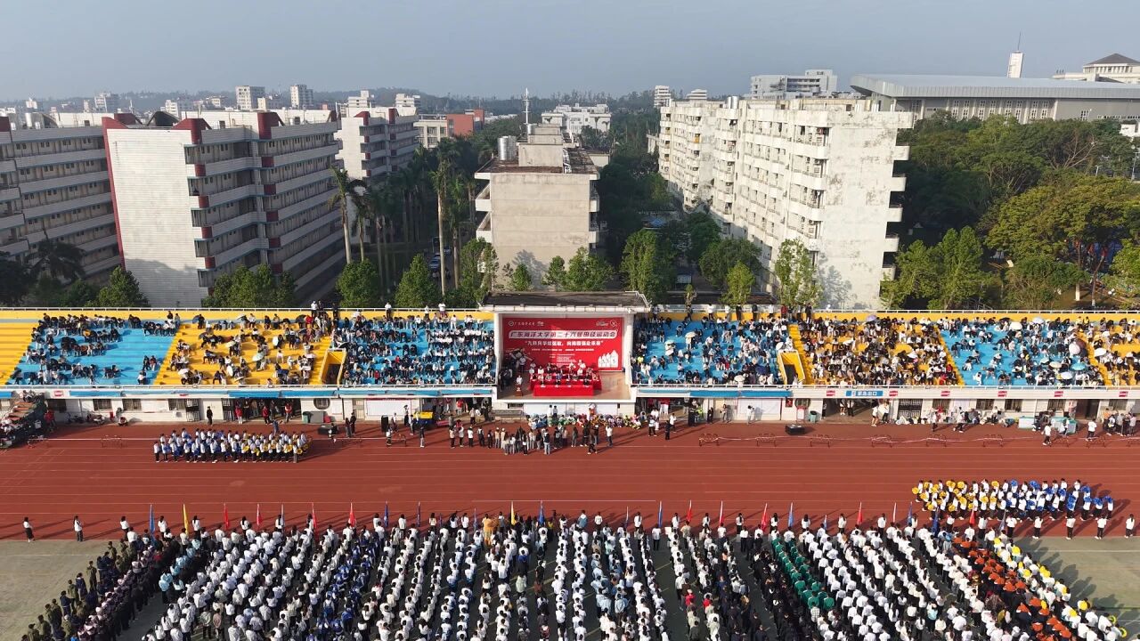 谭平在开幕词中代表学校,向筹备运动会的全体工作人员和即将参赛的运动员致以亲切问候。谭平指出,近年来,学校积极响应党中央号召,深入学习贯彻习近平总书记关于体育强国建设的重要论述和出席第十五届全国运动会开幕式重要讲话重要指示,坚持“健康第一”教育理念,一体推进师生健身与竞技体育融合发展。海大学子在各类体育赛事中表现突出:女子篮球队勇夺第27届中国大学生CUBA二级联赛冠军;武术代表队在2025年中国大学生武术套路锦标赛中荣获3项冠军;龙狮队获得2025年第十七届全国大学生舞龙舞狮锦标赛舞狮项目亚军,跆拳道队获得2025年中国大学生锦标赛季军,龙舟队获得2025年中国大学生锦标赛季军,展现出海大人坚韧不拔、勇于拼搏的精神风貌。这些荣誉不仅是体育育人工作的成果,更是海大精神的有力体现。