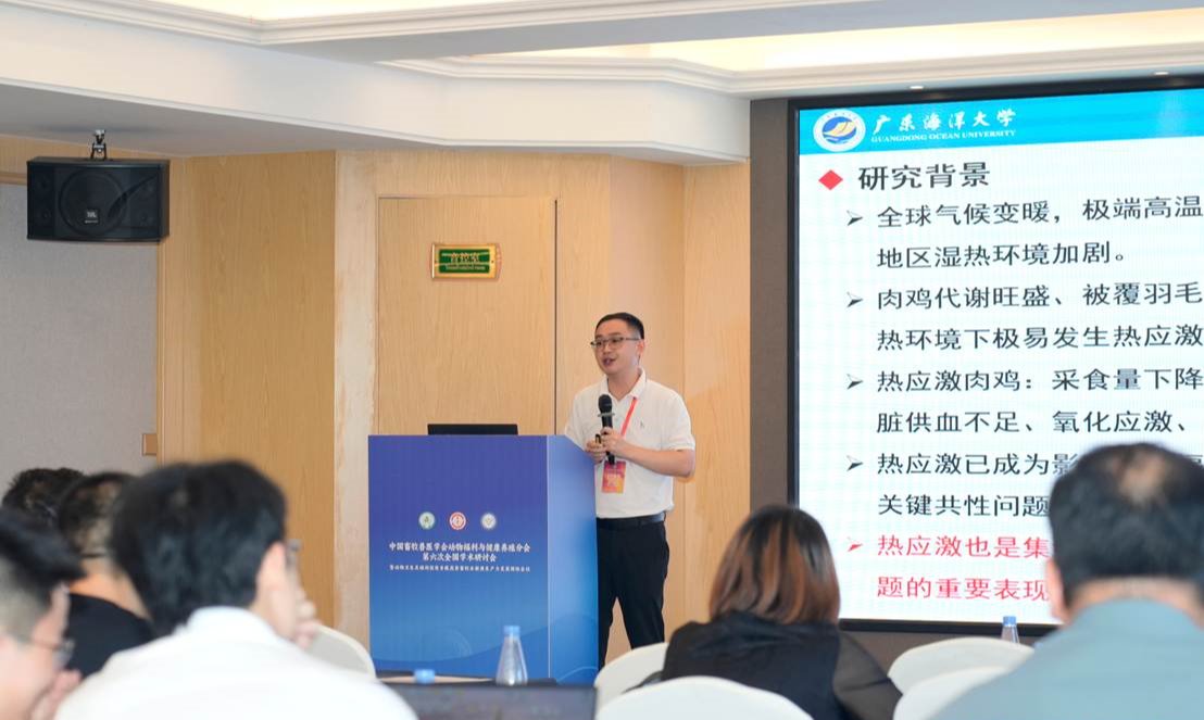 会议举行了分会换届选举工作,杜炳旺当选分会发展顾问,刘文超当选常务理事,林君媛当选理事。学术研讨会邀请了70余位国内外专家学者、行业代表、学术期刊编辑及研究生作会议报告。刘文超作了题为《海藻提取物促进湿热环境下肉鸡健康养殖研究进展》的报告,系统介绍了我校畜牧学科历史沿革、科研特色及海藻提取物调控肉鸡器官健康的研究进展。杜炳旺、刘文超分别主持了两场学术报告。