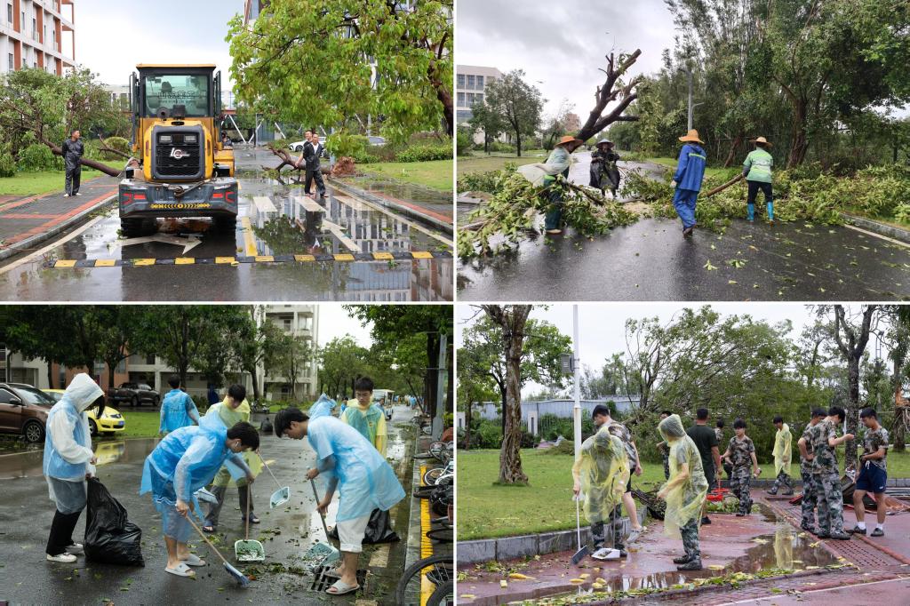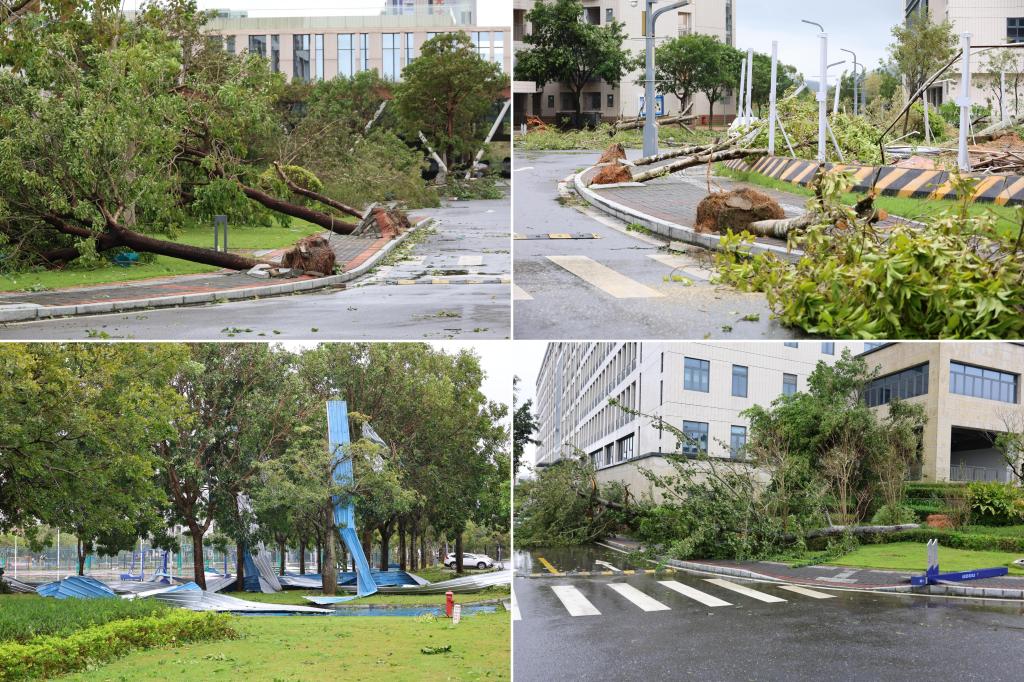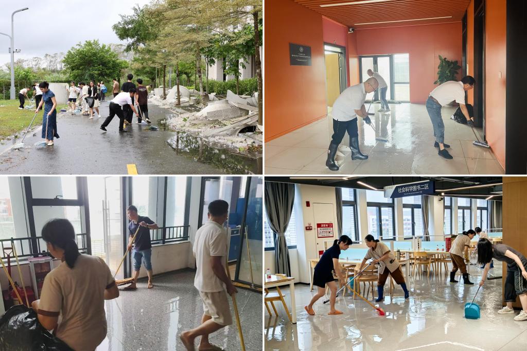 面对灾后校园,阳江校区各单位部门、党员突击队、师生志愿者和物业迅速组织开展清障消杀、设施排查、交通疏导等抢修恢复工作,共同推动校园秩序快速回归。