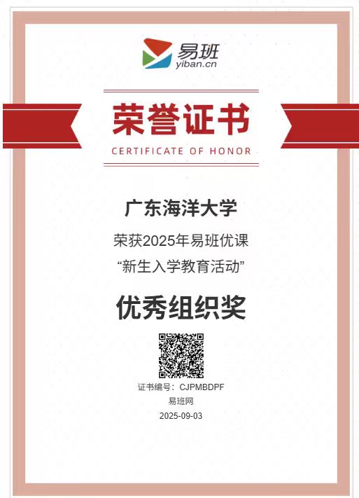 近日,由教育部易班发展中心主办的2025年全国易班优课“新生入学教育活动”评选结果揭晓,我校再次荣获“优秀组织奖”(全国共100个),这也是我校第五次获此殊荣。