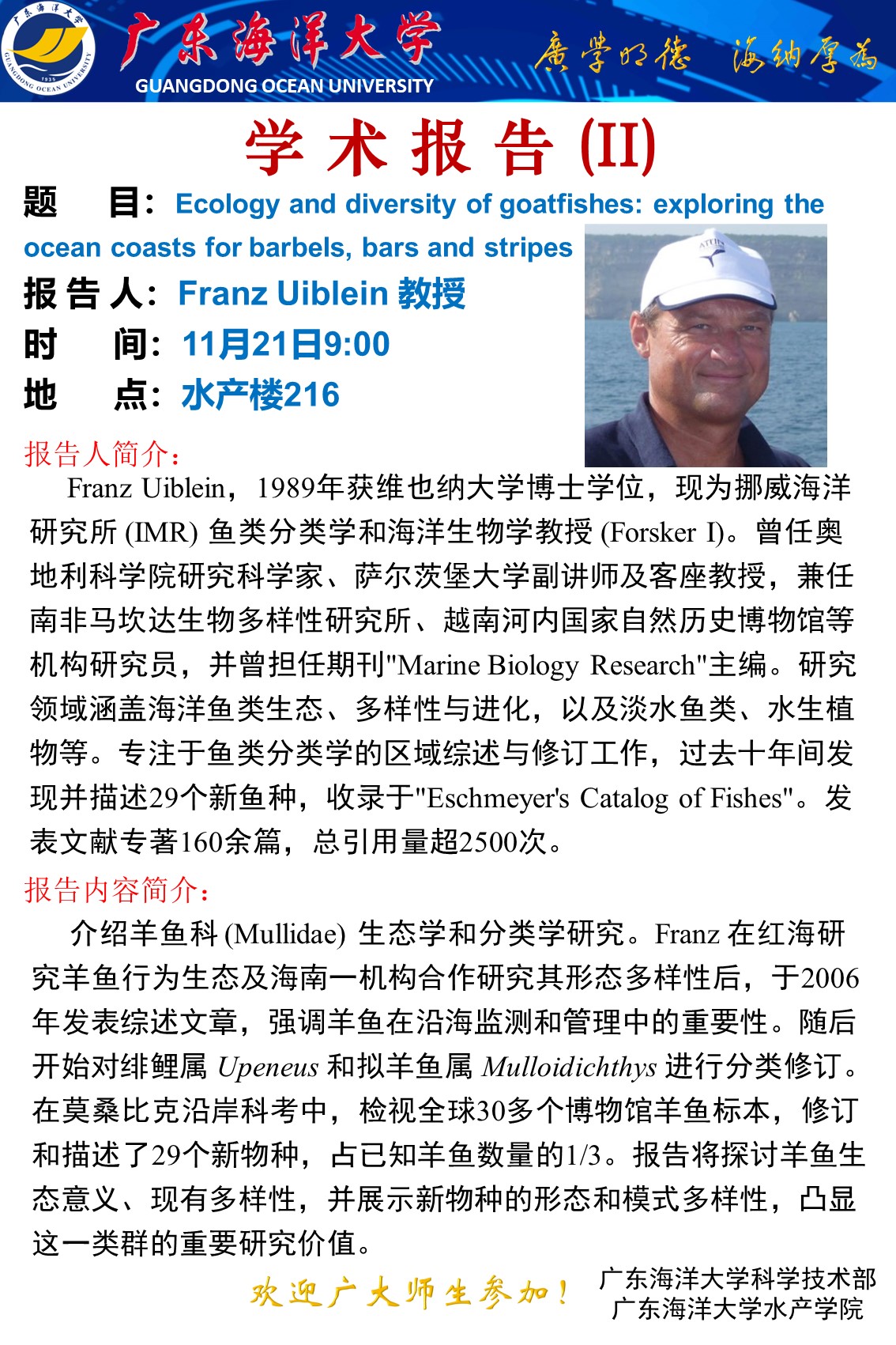 Ecology and diversity of goatfishes: exploring the ocean coasts for barbels, bars and stripes
