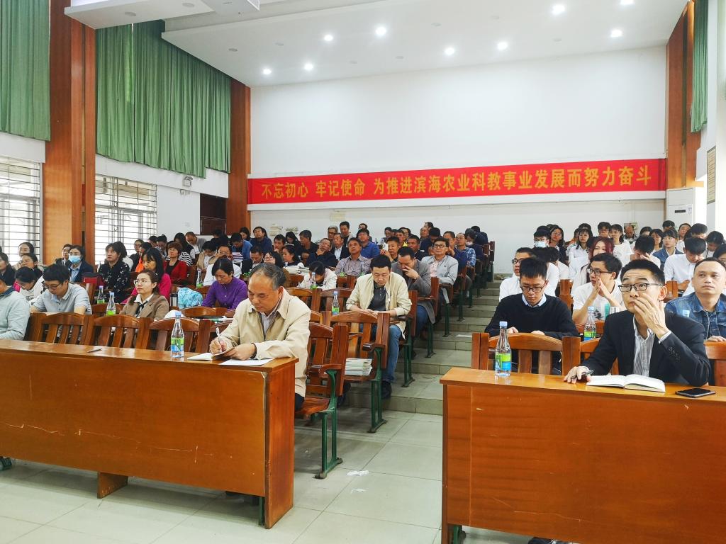 12月2日下午,滨海农业学院组织全体教职工及学生代表在兴农楼109室召开学习“四史”和党的十九届五中全会精神学习宣讲报告会。宣讲会由学校党委理论宣讲团陈青松副教授主讲,学院党委书记邓伟强主持。