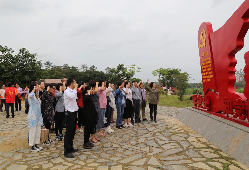 随后,一行围绕东征广场和誓师广场,穿过红星大道,参观了初心火炬塔、东征纪念碑、东征桥和东征湖等景点,并在现场举行了重温入党誓词的宣誓仪式活动。在下洋村办公楼会议室,由党支部书记詹衍玲带领党员们集中学习了《中国共产党简史》之新民主主义革命阶段专题党史内容。支部党员们还展开了交流与讨论。