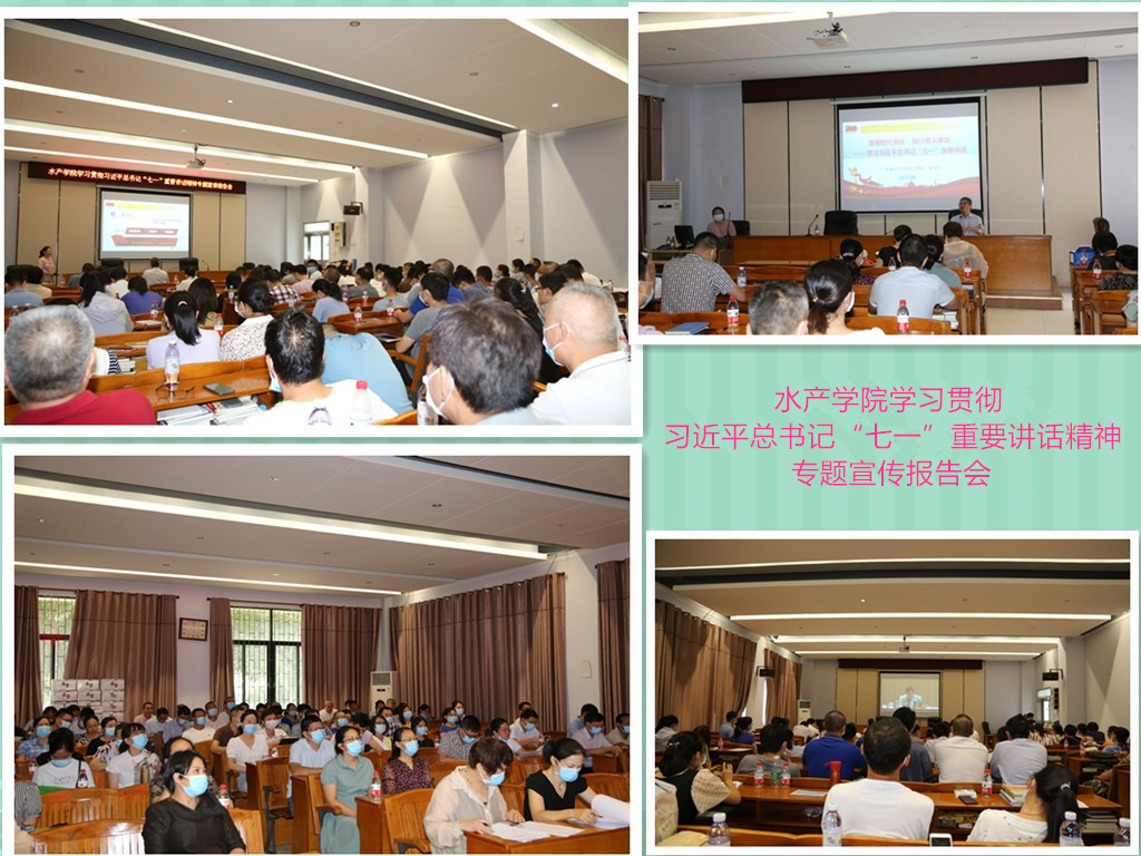 9月22日下午,水产学院在湖光校区水产楼举行学习贯彻习近平总书记“七一”重要讲话精神专题宣讲报告会。学校党委理论宣讲团成员、马克思主义学院郭玉华副教授作专题宣讲报告。水产学院、珍珠研究所、省实验室建设办全体教职工参加宣讲报告会。