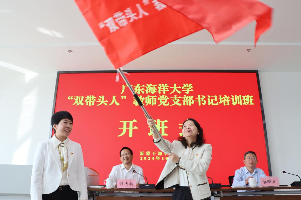 谭平为培训班授旗。此次培训为期5天,自10月8日起至10月12日,来自学校二级党组织的书记、副书记、基层党支部书记和组织员共32人将展开深入学习,包括理论讲座和实地教学等内容,以更好地适应新时代高校党建工作的要求。培训班还成立了临时党支部和临时班委。