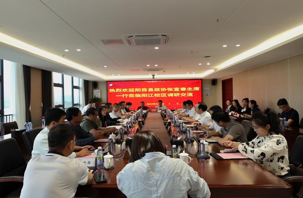 2024年4月9日,阳西县政协主席张宜春、副主席林进康率阳西县政协委员及企业代表一行13人来我院调研交流,校区十分重视本次交流活动,学校党委常委、副校长周昌仕、阳江校区党委副书记丁永成、校区党委副书记陈永强等参加活动。
