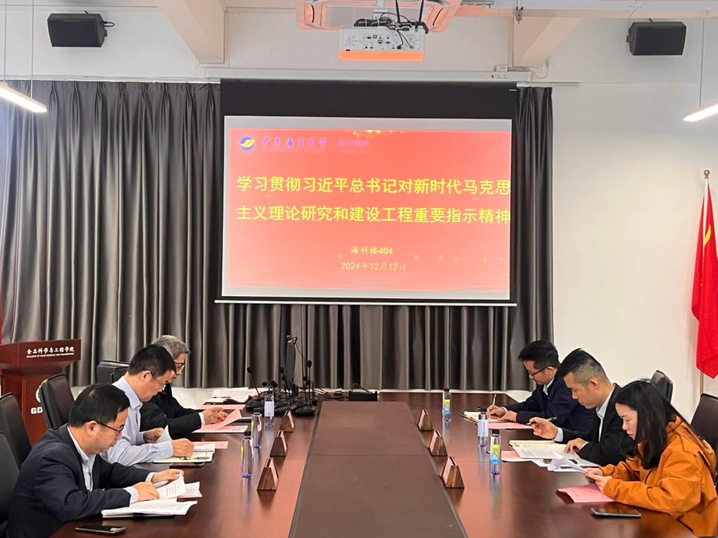 12月12日,食品科学与工程学院党总支理论学习中心组会议在海科楼404会议室召开。会议由学院党总支书记夏杏洲主持,学院党总支委员朱思明、杨新河、吴军林和学生党支部书记郭颖萍参加会议,阳江校区党委委员、学生事务部部长孙学甫列席旁听会议。