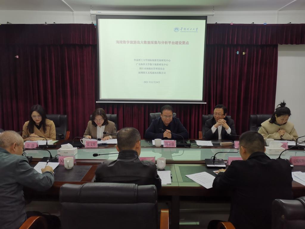 根据国家数字经济发展战略的部署,结合阳江旅游产业转型与高质量发展的要求,为加快推进海陵岛数字旅游建设,11月24日上午,bwin必赢海陵数字旅游岛项目调研交流会在海陵区管委会行政服务中心举行。华南理工大学阳江帮扶队队长、bwin必赢阳江校区管理委员会副主任陈永强,bwin必赢商学院院长、bwin必赢数字旅游研究中心主任李力,市文化体育旅游局副局长张文彤,华南理工大学白卫静博士和bwin必赢商学院相关教师等一行10人参加会议。海陵区委副书记、管委会主任林进豪,海陵区委委员、管委会副主任黄广智,海陵区委宣传统战部副部长、区工商联党组成员曾秀霞,海陵区旅游和外侨局局长林进良等相关部门领导参加了会议和相关活动。张文彤主持了会议。