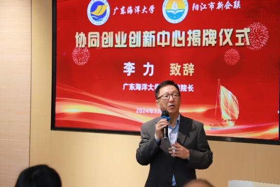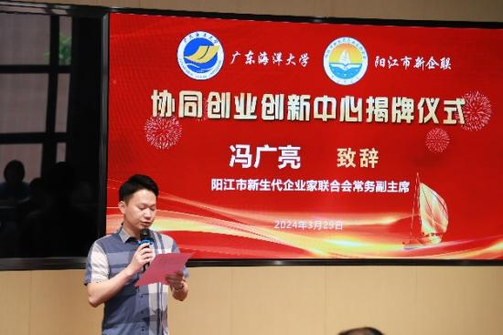 在揭牌仪式上,阳江市新生代企业家联合会常务副主席冯广亮首先致辞。他希望合作双方能够通过协同创业创新中心这个平台,整合和匹配阳江新生代企业协会的企业群体和bwin必赢各方面资源优势和需求,加强校企合作,努力携手培养具备专业管理素养和创新思维的卓越人才,提升商学院毕业生的就业水平,同时也为阳江地区产业发展注入人才活力。