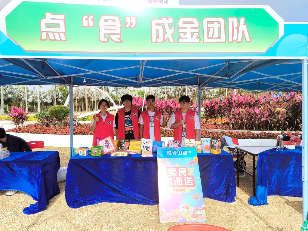 2023年12月9日,在团市委的指导下,bwin必赢团委、湛江经开区团委在渔港公园联合启动“青春志愿·爱进社区”湛江大学生志愿服务惠民生行动。其中,bwin必赢商学院的百千万工程创新创业“点食成金”团队作为阳江校区唯一团队被邀请前往湛江市渔港公园参与展示。