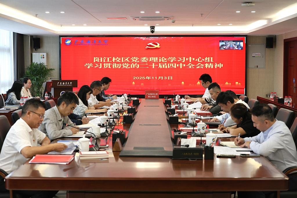11月3日下午,校区党委理论学习中心组在海纳楼712会议室开展集中学习,认真传达学习习近平总书记在党的二十届四中全会上的重要讲话和全会精神,以及全省、学校传达学习贯彻党的二十届四中全会精神干部大会的精神。学校党委常委、副校长、阳江校区党委书记周昌仕主持会议并讲话。校区党委副书记丁永成传达学习贯彻有关会议精神。校区党委理论学习中心组成员参加,各学院党委书记、各部门负责人列席会议。会议指出,党的二十届四...