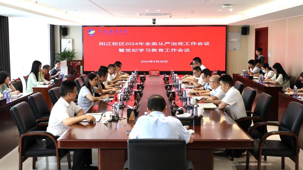 4月28日下午,阳江校区在海纳楼712室召开2024年全面从严治党暨党纪学习教育工作会议,传达学校2024年全面从严治党工作会议精神,部署校区全面从严治党和党纪学习教育工作。学校党委常委、副校长、阳江校区管理办公室主任周昌仕出席会议并讲话。校区党委副书记丁永成主持会议。校区领导、各学院党总支书记、各职能部门负责人、校区图书馆馆长以及校区机关党支部全体党员干部参加会议。周昌仕传达了学校近期召开的党纪学习教育动...