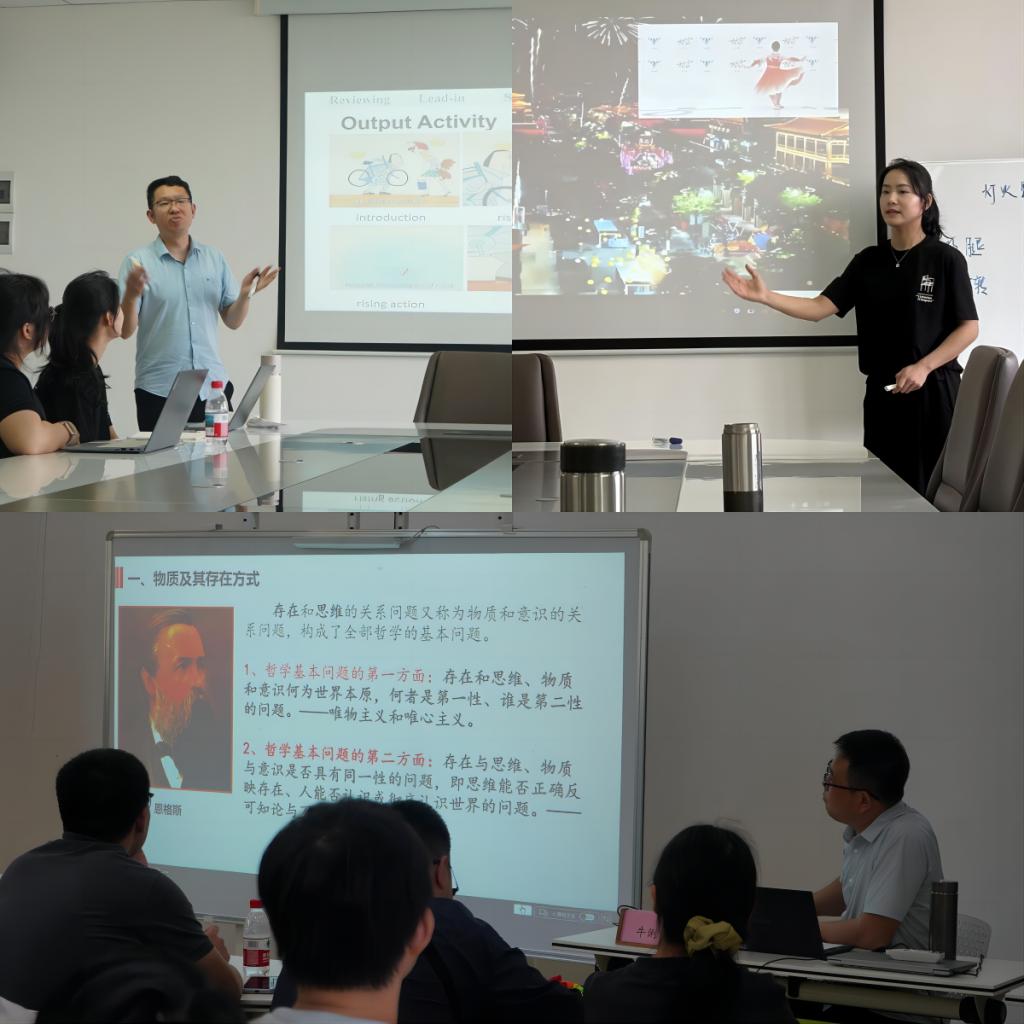 活动共设三场公开课,分别邀请华南理工大学马克思主义学院牛俐智博士、我校人文与教育学院石磊副教授和刘鸿老师担任主讲。华南理工大学牛俐智博士以《马克思主义哲学基本原理》为核心,通过唯物主义与唯心主义对比分析,结合案例研讨阐释马克思物质观的现实意义,提出“科研反哺教学”理念;人文与教育学院石磊副教授在“Swimming through Fear”课程中创新应用AI技术,运用智能词汇系统解析叙事框架,通过短视频导入与生理反应分析强化语言教学互动性;刘鸿老师的《全健排舞:灯火里的中国》将美育与传统舞蹈相结合,通过编排实践《灯火里的中国》,采用分层训练模式提升学生的舞蹈技能和家国情怀认知。