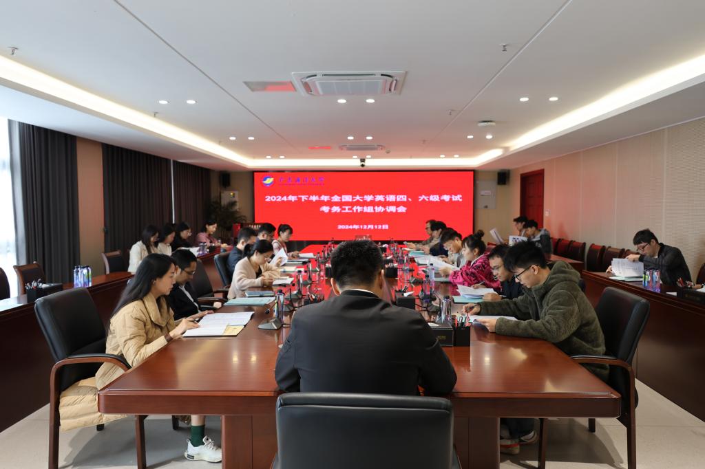 12月12日上午,阳江校区在海纳楼712会议室召开2024年下半年全国大学英语四、六级考试考务工作组协调会。校区党委委员、管理办公室副主任兼教学科研部部长白浚宇主持会议,教学科研部副部长许文姬,校区全体考务人员参加会议。