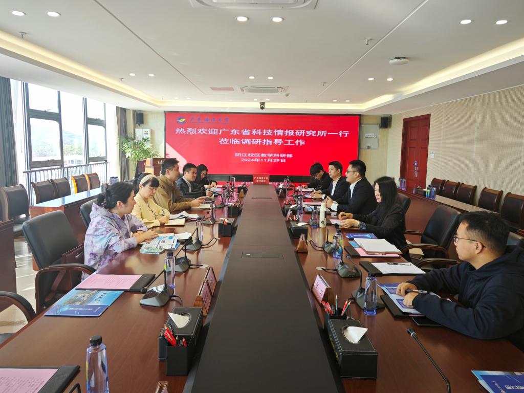 11月29日上午,广东省科技情报研究所信息传播中心主任刘启强一行到阳江校区调研指导工作,并在海纳楼712会议室召开工作座谈会。会议由阳江校区党委委员、管理办公室副主任兼教学科研部部长白浚宇主持,阳江市科技局及阳江校区相关部门负责人出席。