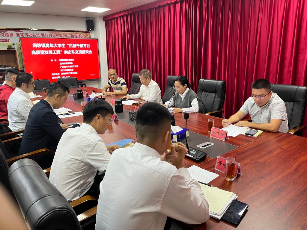 11月19日上午,校“百县千镇万村高质量发展工程”青振兴团队助力闸坡海钓产业交流座谈会在闸坡镇人民政府召开。海陵试验区党建工作办公室四级调研员、区总工会主席陈设,校区党委委员、学生事务部部长孙学甫,海陵试验区党建工作办公室(团委)负责人、闸坡镇司法所所长林伟坤,海陵试验区闸坡镇委委员项玮,海陵试验区闸坡镇副镇长梁福权,团市委兼职副书记、阳江校区团委书记胡鹤泷,海钓协会执行会长雷昂出席会议。会议由项玮主持。