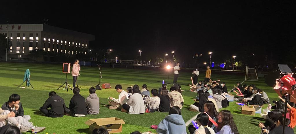 ————各类学生社团组织了书法交流鉴赏、萤火音乐会、投篮挑战赛,乒乓球、羽毛球等形式多样的户外社团文体活动,并专门安排了《长津湖》、《八佰》等缅怀先烈致敬英雄的观影活动,丰富同学们假期校园生活。