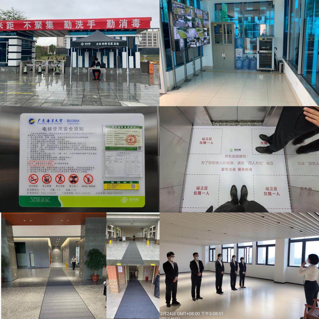 针对近期回南天校内公共区域地面返潮问题,加强日常巡检,在各楼栋主要出入口铺设地毯并加强洗地机清洗地面频次,避免因地面潮湿出现的安全事故。
