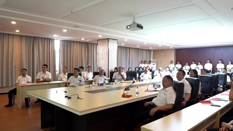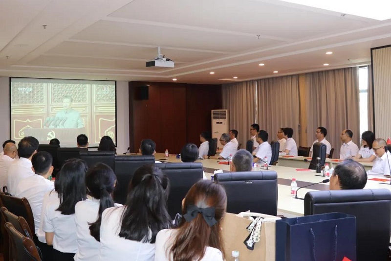 早上8时整,庆祝大会正式开始,56门礼炮鸣放100响,五星红旗冉冉升起,激昂雄壮的国歌声响彻天安门广场。观看直播的全体党员干部自觉凝神肃立,同唱国歌。全体党员干部认真聆听了习近平总书记饱含深情的讲话,大家群情激昂、倍受鼓舞,心中涌动着浓浓的爱国情。庆祝大会在雄壮的国际歌声中结束。