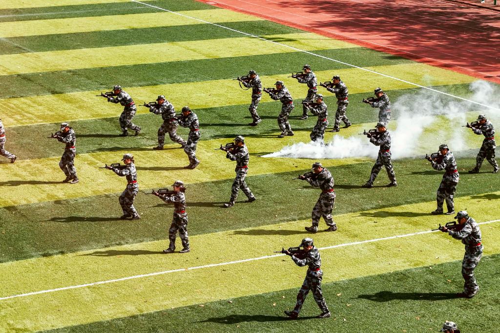 与往年相比,今年军训增加了军歌比赛与实弹射击项目。