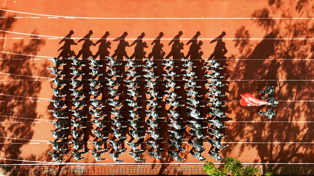 大会在雄壮的国歌声中拉开帷幕。“同学们好!”“同学们辛苦了!”杨洲在检阅方队时向教官和新生表示慰问。同学们步履铿锵、口号嘹亮、英姿飒爽,步伐中彰显着广海学子坚韧不拔、自强不息的精神风貌。军事汇报表演中,应急棍、擒敌拳、刺杀操、战术表演……,同学们动作干净利落。